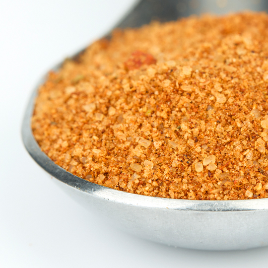 A spicy blend with Spanish tomato flavor and cumin seeds, among other ingredients. Also delicious in combination with chicken products.